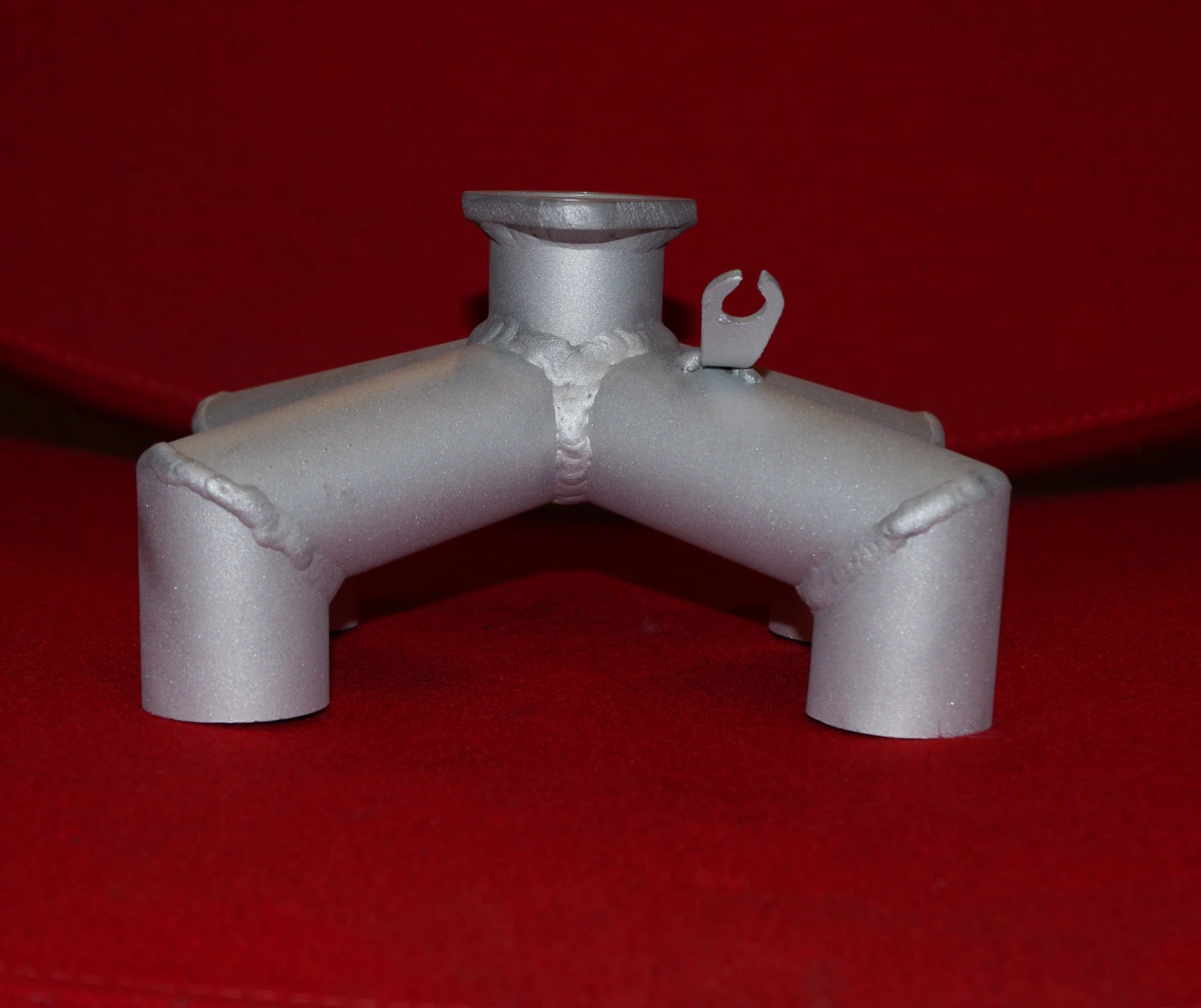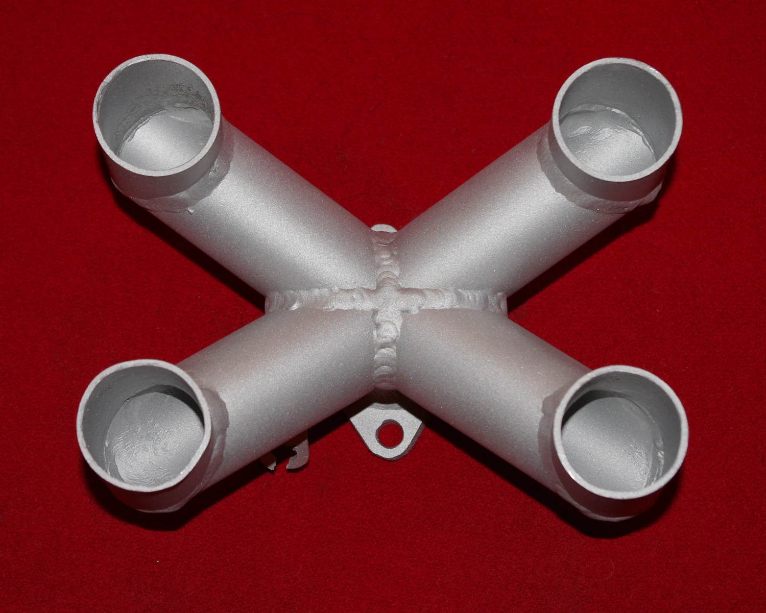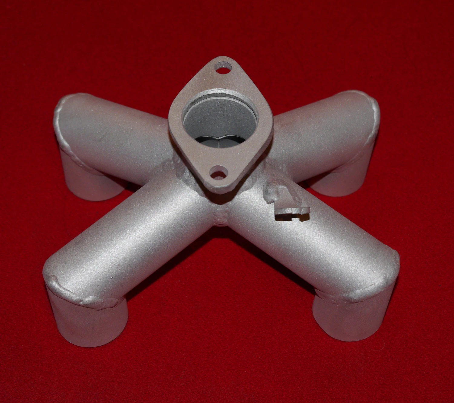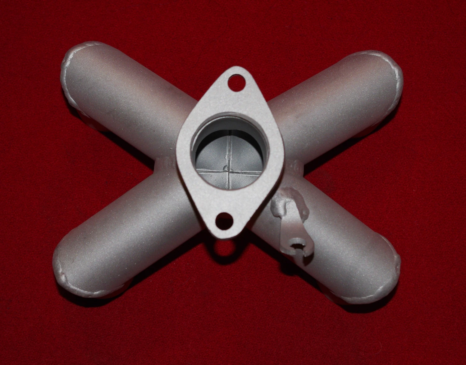 Manifold is designed to convert a four carburetor configuration into one