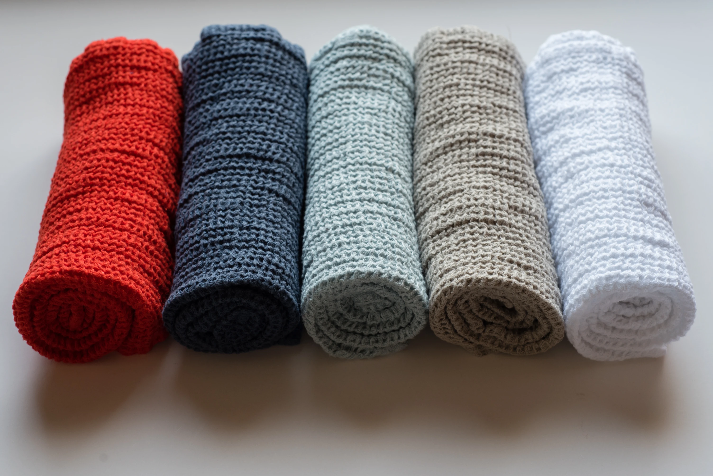 The waffle weave texture enhances absorbency while allowing the towel to dry quickly, making it both practical and long-lasting. Lightweight yet durable, this linen towel feels gentle on the skin and becomes softer with every wash.