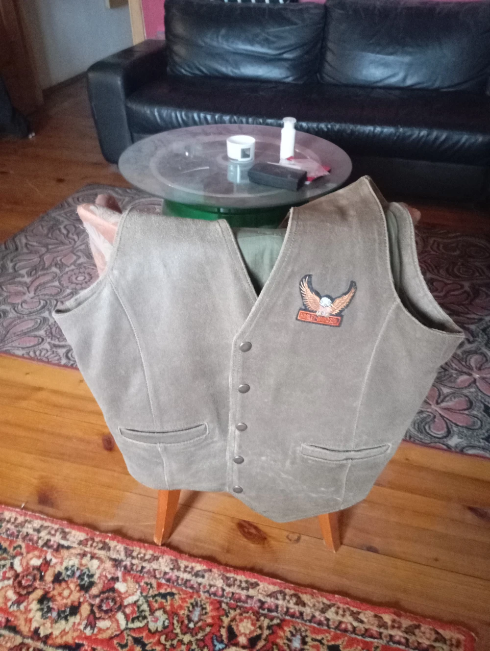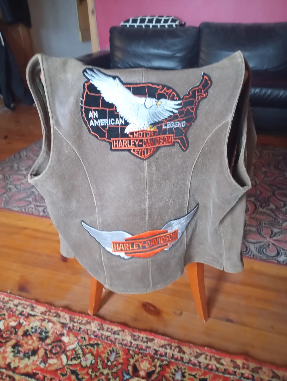Up for sale Harley Davidson motorcyclist leather west. It is in good used condition, size M with embroidered HD emblems.