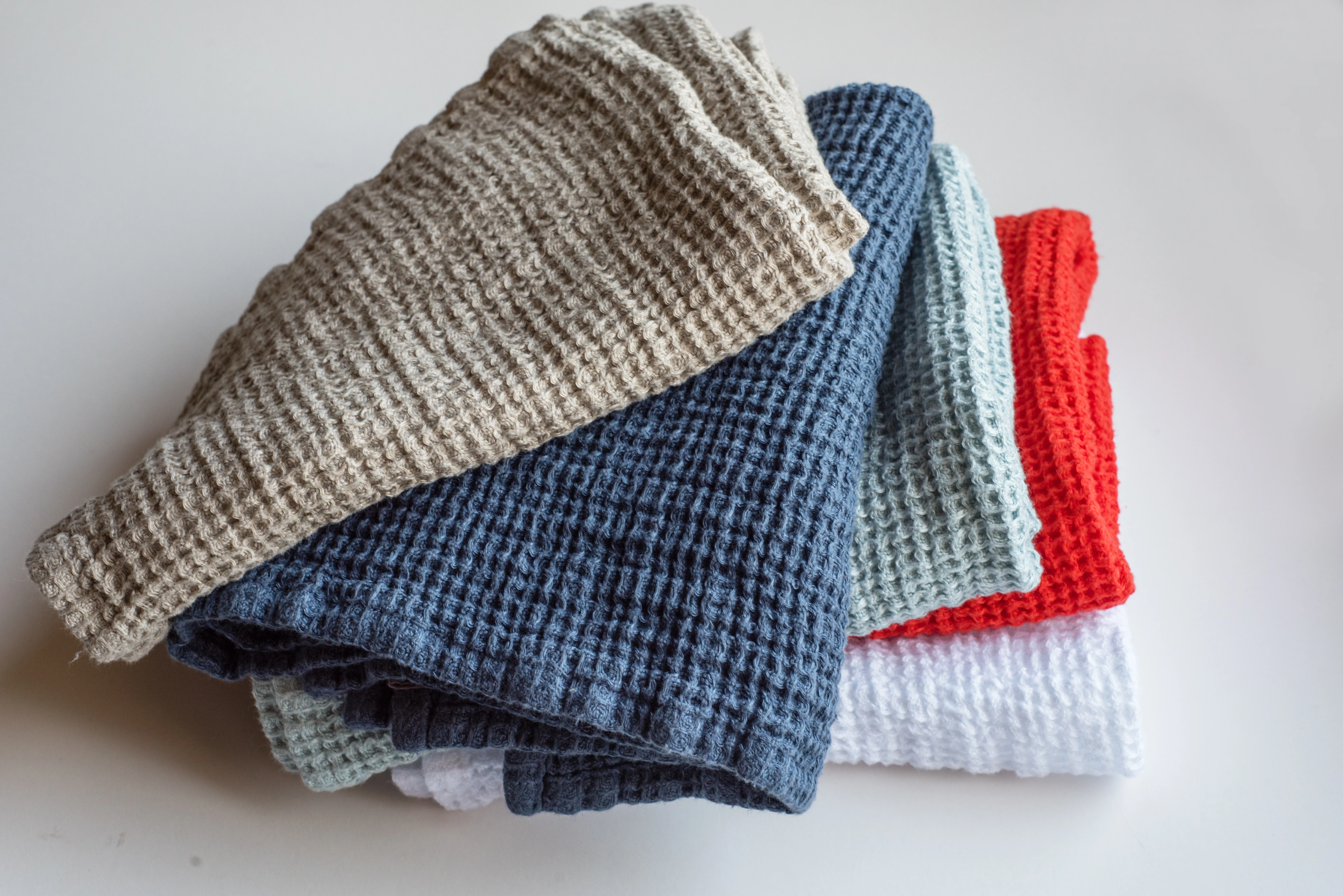 The waffle weave texture enhances absorbency while allowing the towel to dry quickly, making it both practical and long-lasting. Lightweight yet durable, this linen towel feels gentle on the skin and becomes softer with every wash.