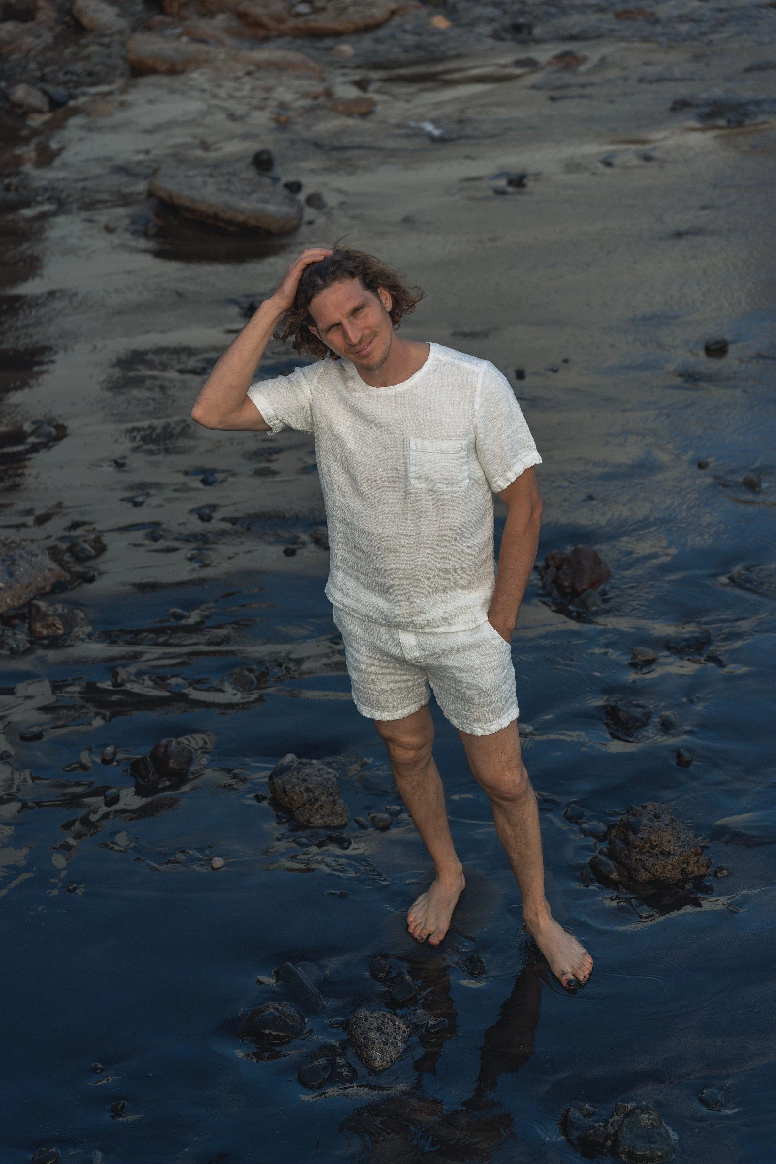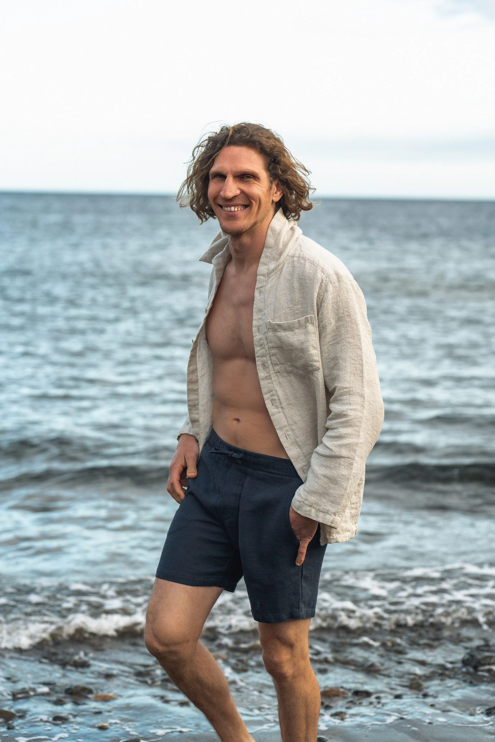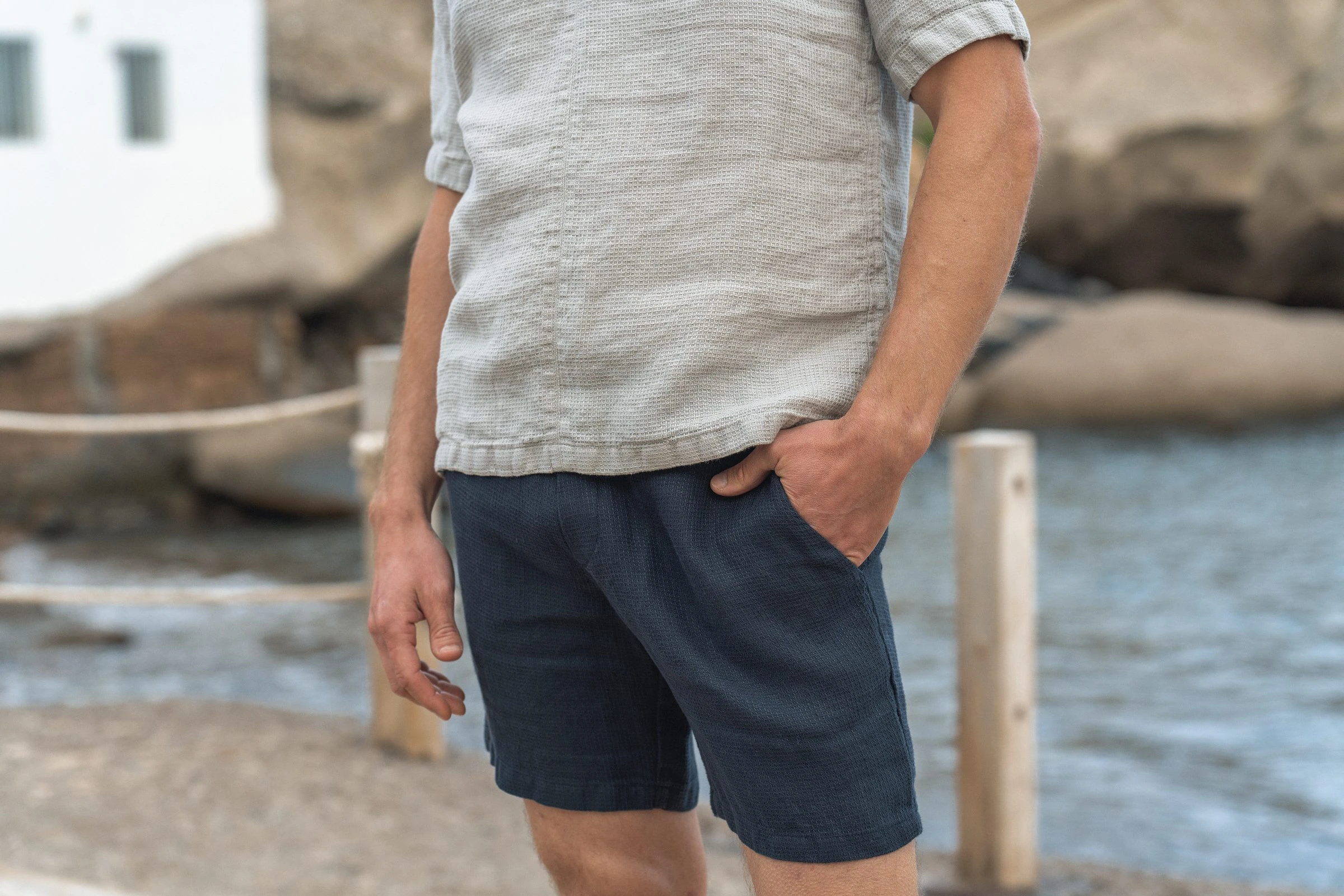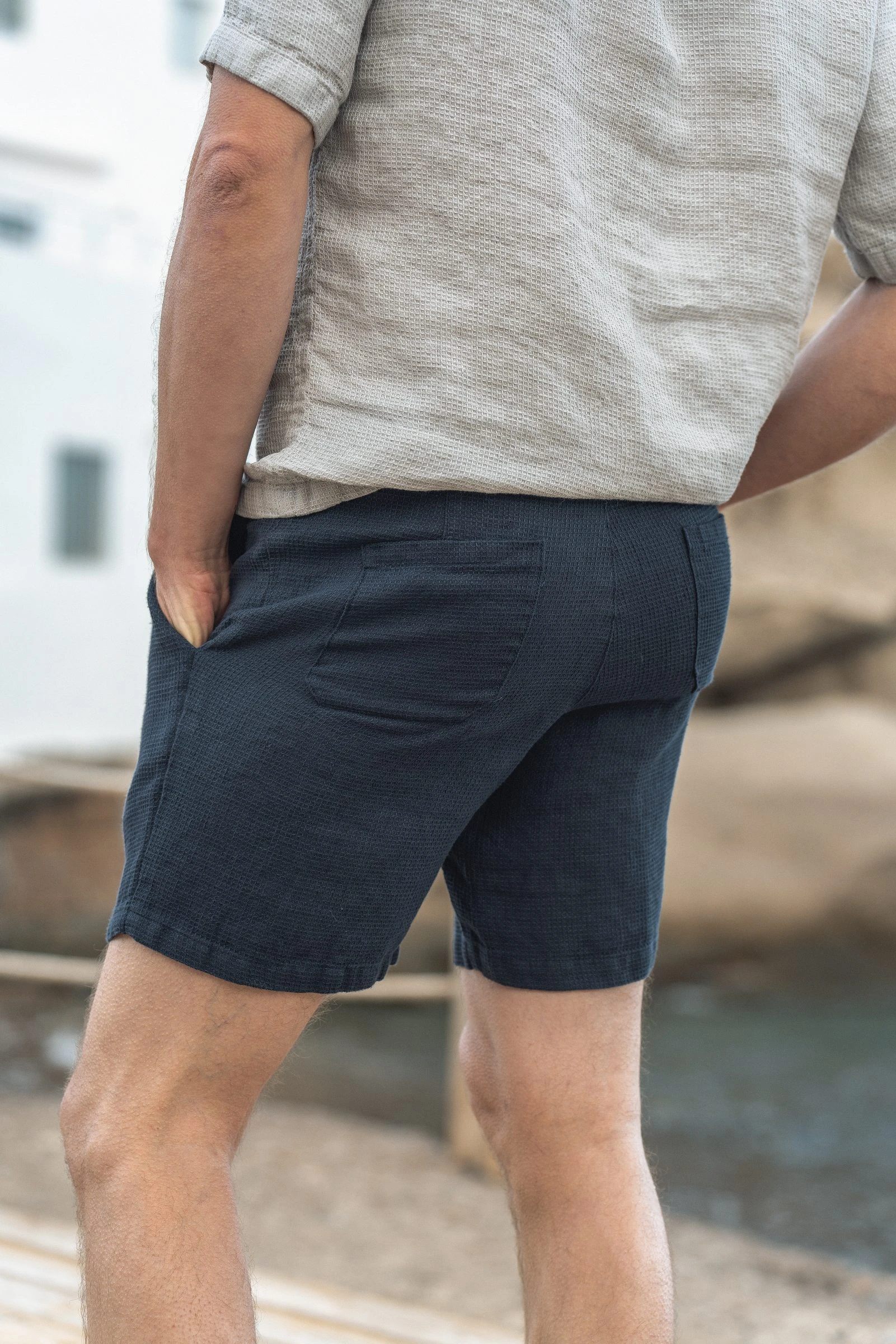 Enjoy summer comfort with these men’s small waffle weave linen shorts, perfect for warm days by the sea or everyday relaxation. Made from breathable natural linen, they are lightweight and comfortable to wear all day.