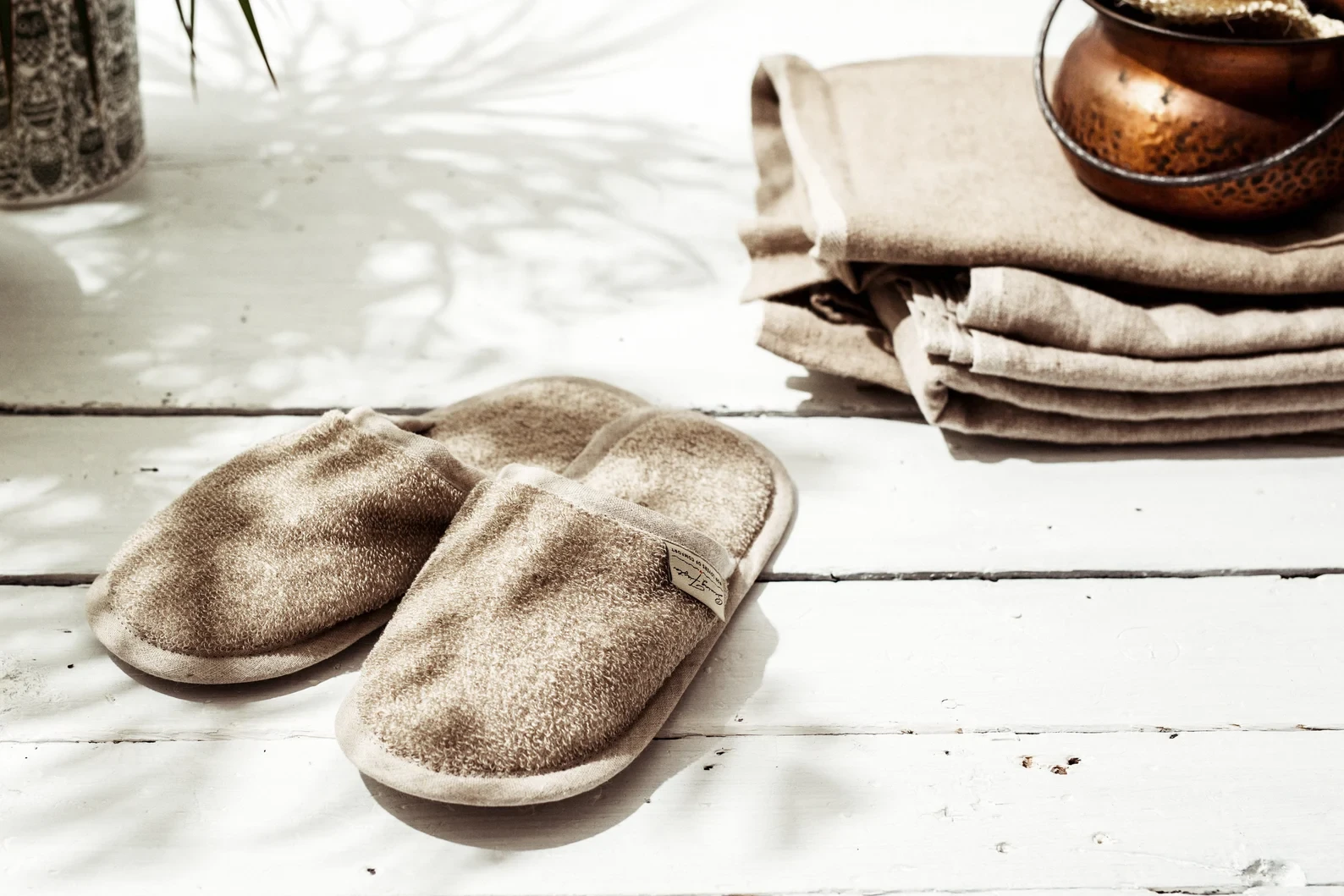 Comfortable and breathable linen slippers for everyday use at home, spa, sauna or after a shower.