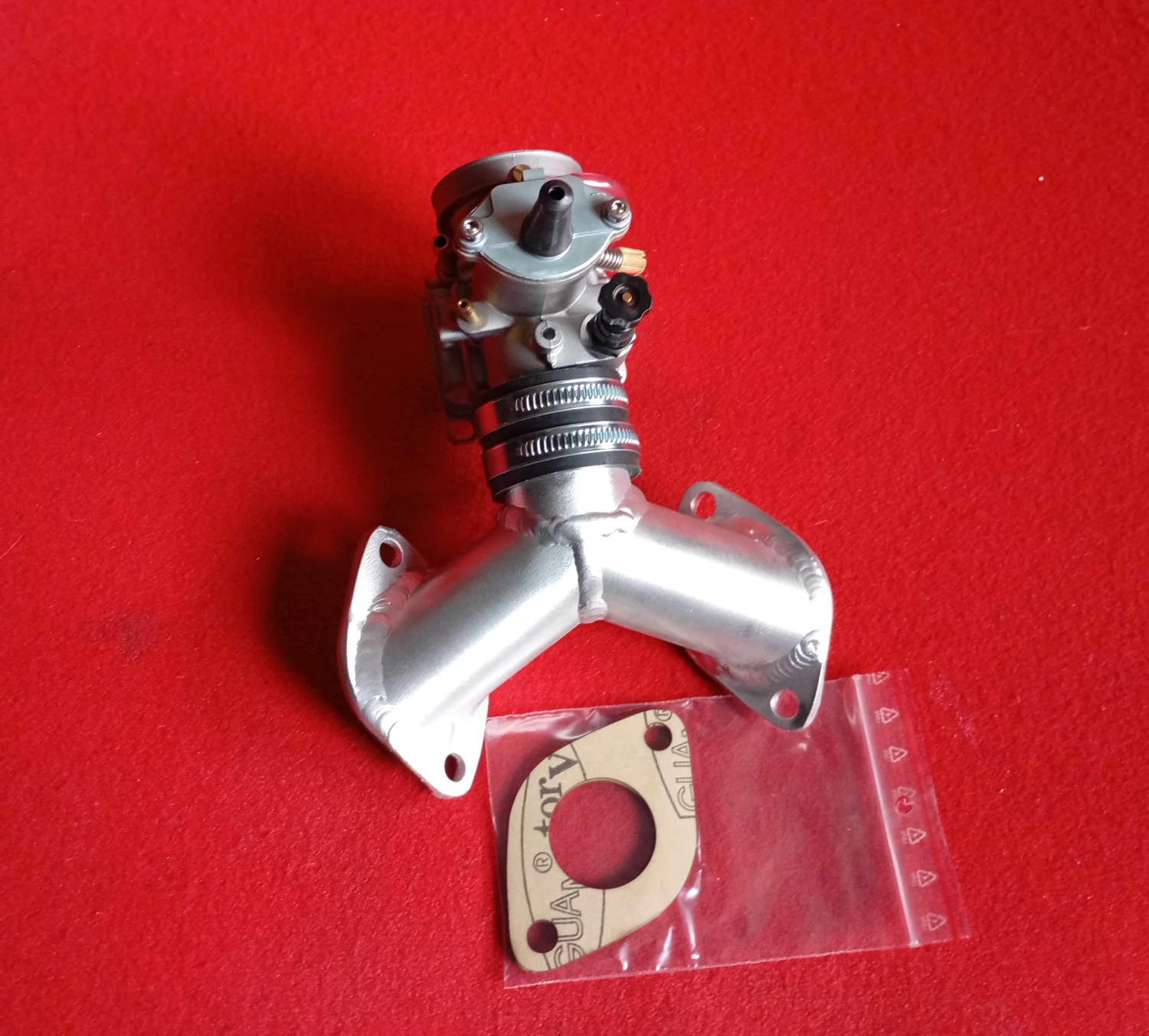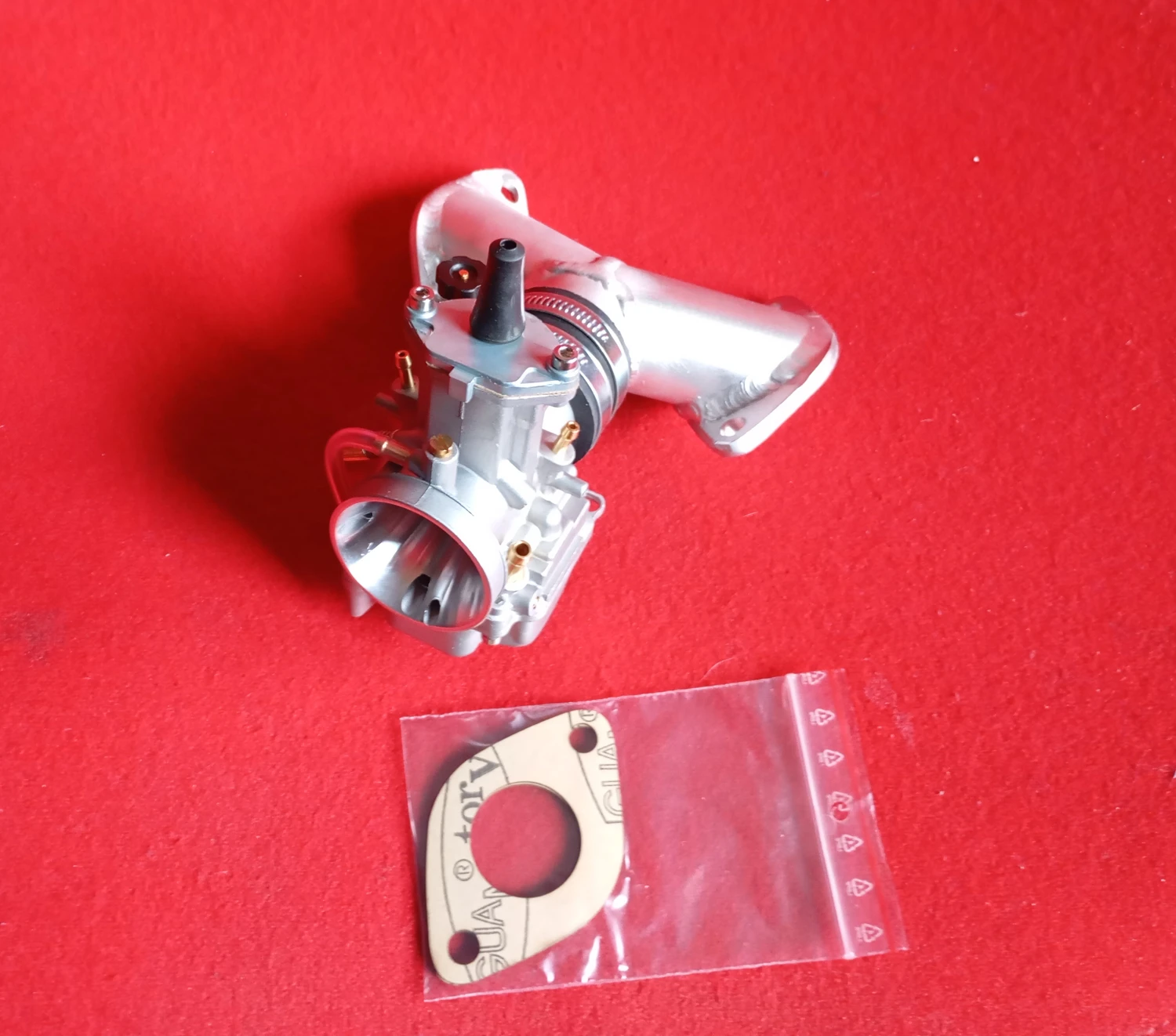 ALUMINUM intake manifold with High Performance PWK 34 carburetor and carburetor holder/boot.