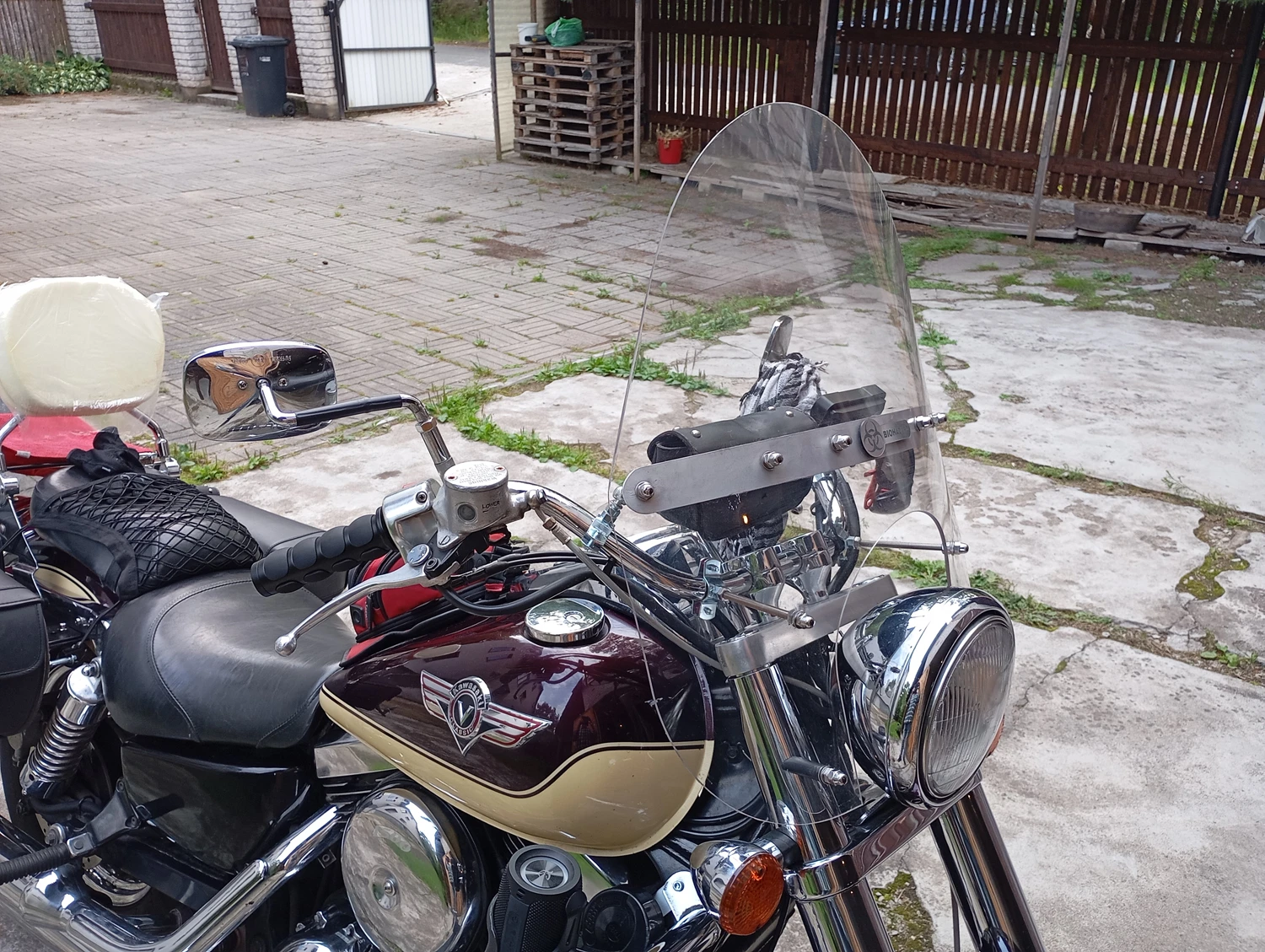 VN 1500 KAWASAKI Vulcan Classic (95-08) TALL WINDSCREEN WINDSHIELD SCREEN. Tall 50  cm from headlight, excellent wind protection and visibility. No view distortion. Aluminum bracket for windshield bag, navigation and etc.
